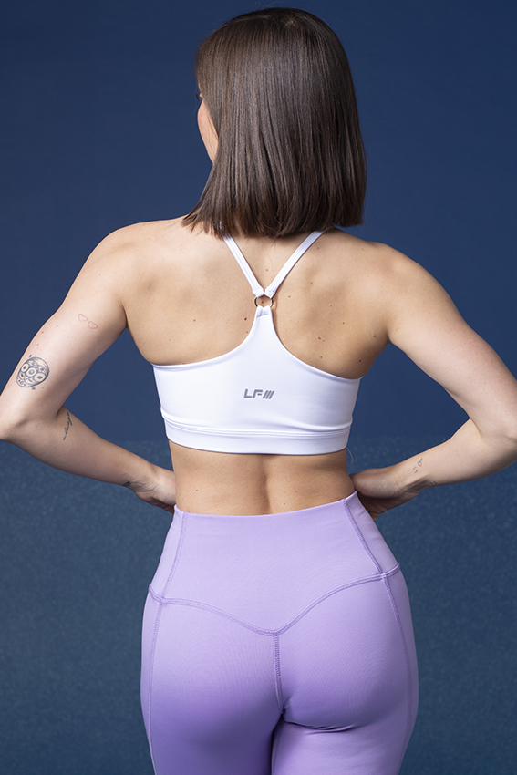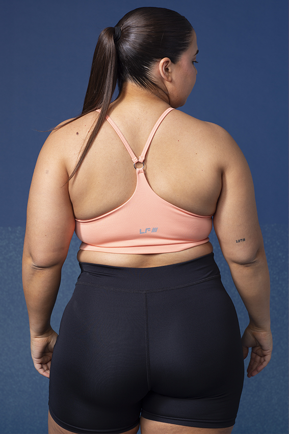 Con doble tela para más soporte y ajuste. Presenta argolla en la espalda y breteles finos, combinando firmeza y estilo.